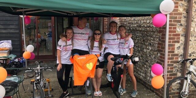 Elizabeth and four colleagues spent 24 hours cycling on stationary bikes as part of her family’s efforts to raise as much money as possible for Secondary1st in memory of her mother who passed away from secondary breast cancer in February 2018. It was an incredible effort by the whole team in the difficult conditions of the very hot weather.