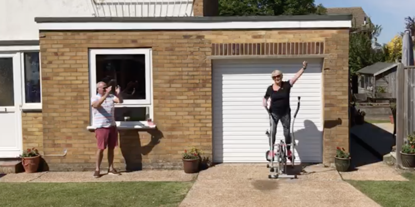 Angela had decided to take part in the 2.6 Challenge which started on 26th April, the date planned for the London Marathon, to raise money for Secondary1st. She had been treated for breast cancer in 2009 and then diagnosed with secondary breast cancer at the end of 2019. She found her old cross-trainer and was determined to complete the full 26 miles on it however long it took. Little by little and day by day, she added to the total of miles she had achieved. Each day she felt able to go a little further and each day her arms and legs felt a little stronger. She completed her challenge and finished her 26 miles sooner than she had expected, to the congratulations of her socially-distanced family and friends.