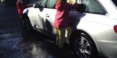 Seren aged 9 and Morgan aged 7 took advantage of the sunshine on October 16th to hold a charity car wash in aid of Secondary1st. With a great deal of washing and polishing they raised £45.
